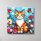 Cat themed canvas wall art. A cute orange cat sitting in flowers and surrounded by butterflies. The art is in an impasto oil paper quilling style.