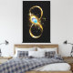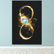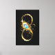 Or, symbole brillant de l'infini, décoré de bijoux plumes paon avec turquoise sur arrière - plan noir.