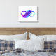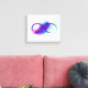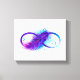 Infinity symbole with a beautiful feather painted in purple and blue bright colors on white background