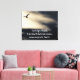 Inspirational Christian Art - John 8 Vs 12 in Wrapped Canvas Print. Designed with image of a bird in flight from darkness into light. Scripture text includes: I am the light of the world. He who follows Me shall not walk in darkness but will have the light of life. A Biblical scripture for Christians and Evangelical. Inspirational gift.