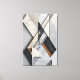 Art abstrait combinant des marbres nobles de tons blancs, noirs et gris avec des détails en bronze. Des formes géométriques diagonales créent de la profondeur et du mouvement. Parfait pour une décoration moderne recherchant la sophistication, le minimalisme et une esthétique architecturale haut de gamme avec une élégance intemporelle.