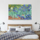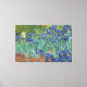 Van Gogh commença à peindre "Irises" peu après son arrivée à l'asile en mai 1889, travaillant depuis le jardin de l'hôpital. Cette pièce manque de l'émotion intense présente dans ses oeuvres ultérieures. Van Gogh a décrit la peinture comme "le chef d'éclair de ma maladie", croyant que cela l'a aidé à éviter la folie. La peinture a probablement été influencée par les imprimés de blocs de bois japonais ukiyo-e, comme l'ont été beaucoup de ses oeuvres et d'autres artistes contemporains. L'influence est évidente dans les contours forts, les perspectives inhabituelles, y compris les gros plans, et la couleur plate, locale qui ne suit pas la chute de la lumière. "Irises" dégage un sentiment de douceur et de légèreté, débordant de vie mais sans tragédie.