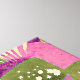 Joli décor mural. Une représentation de jardin floral avec des fleurs et de l'herbe surdimensionnées dans des tons de rose, violet, mauve.