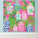 Pots de chinoiserie colorés et feuilles de banane sur rose vif