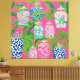 Toile jarres chinoiserie et feuilles de bananes sur rose