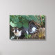 Le chat invisible. Gros chat gris et blanc se cachant sous quelques feuilles dans une journée chaude. Photographie de chat. cadeau Amoureux des chats.