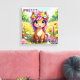 Une image adorable pour la chambre d'un enfant. Un joli poney assis dans un champ de fleurs colorées et vibrantes. Un dessin animé adorable pour ajouter une touche de conte de fée à la chambre de votre fille.