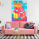 Ma peinture abstraite colorée d'un joli chat est imprimée sur une toile enveloppée