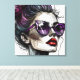Toile Jolie femme dans les lunettes de soleil et rouge v