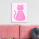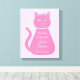 Cette impressionnante impression de toile est conçue pour une pépinière. Le design se compose d'une image art numérique d'un joli chat rose avec une queue bouclée. Ses yeux sont rose pâle avec des élèves noirs et elle a de longs cils noirs. Elle porte un arc rose dans ses cheveux et un beau collier de perles autour du cou. Le design est parfait pour célébrer une petite fille. Il y a du texte personnalisé sur le chat pour que vous puissiez inclure tous les détails de la naissance.