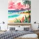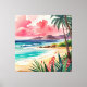 Un littoral tropical paisible où sable doré côtoie vagues turquoise et ondulantes. Des palmiers luxuriants se dressent sous un coucher de soleil rose et turquoise. L'évasion idéale pour ceux qui aiment la plage et la brise marine.