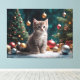 Toile Jouer Kitten de Noël par l'arbre avec ornement