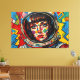 L'œuvre d'art numérique d'Otis Porritt présente un gros plan saisissant d'une femme portant un casque d'astronaute, réalisé avec une esthétique dynamique de l'Art Pop. Ses yeux bleus perçants et ses lèvres rouges vibrantes attirent l'attention, tandis que son visage est orné d'un motif de points Ben-Day rouges, imitant l'impression de bande dessinée. Des contours noirs audacieux définissent ses traits et les contours du casque jaune et blanc. L'arrière-plan, un bleu vif ponctué d'éclats graphiques et de points de demi-teinte, amplifie l'ambiance énergique et rétro-futuriste de ce portrait captivant.