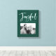 Montrez votre photo préférée en style avec notre toile Joyful Script. L'impression en toile comporte le mot "Joyeux" dans un script blanc, écrit à la main avec votre photo encadrée en vert. Personnalisez l'impression en ajoutant votre nom ou votre texte personnalisé.