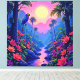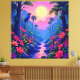 Experience the serene magic of a fantasy forest captured at a vibrant sunset. This stunning artwork is an emotionally engaging escape, featuring neon pink flowers, tall palm trees, and a river bathed in mystical light. A blue macaw completes this tropical dreamscape. While the initial concept was generated using AI technology, it was then expertly enhanced and edited by a skilled artist, ensuring its uniqueness and creative depth. This perfect blend of technology and human touch makes for a truly special piece of surreal art. Bring this exotic paradise into your space! Place your order today and embrace the joy of owning this captivating design