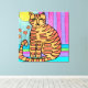Mon abstrait tableau numérique coloré d'un chat assis au soleil imprimé sur une toile enveloppée
