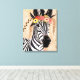 Cette impression présente un zèbre doux orné d'une couronne de fleurs | Par Victoria Borges. ID image : 128246GG