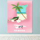 Carte de Trinidad illustrée affiche de voyage imprimé ou une belle plage de sable et un bateau de pêche en bois.