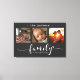 Ce magnifique tableau mural en toile présente un magnifique collage photo à trois images présentant des souvenirs chéris, orné du message sincère "La famille est tout". L'élégant design noir et blanc, combiné à un script exquis et à une typographie d'impression, crée une pièce sophistiquée et durable qui complètera n'importe quel style intérieur. Personnalisez-le avec votre nom de famille. Créé par Simply Farmhouse Press.