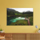 Femme au parapluie rouge devant le lac vert par une journée pluvieuse à la belle Zelenci, Slovénie.