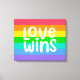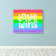 Cette oeuvre présente un arc-en-ciel coloré avec les mots Love Wins.