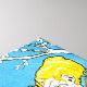Peu blond cupidon-comme le personnage de dessin animé avec des ailes et les grandes chaussures rouges entassant le sien cintrent tout en se tenant sur un crâne. Illustration par le réalisateur de dessins animés italien Antonio Rubino de la couverture de Maggiolata, 1906.
