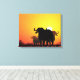 Un troupeau de buffles du Cap se tient en silhouette contre les feux du soleil couchant. L'art informatique de Kathie Miller.
