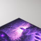Une forêt surréaliste baignée de lumière violette révèle une procession silencieuse de figures grimpant un chemin mystique vers un sommet inconnu. Une énergie pourpre pulse à travers le sol et les corps, les liant à une force invisible. Certains s'élèvent et avancent, tandis que d'autres luttent, s'agenouillent ou restent prisonniers du poids de leurs propres pensées. Un visage ancien colossal émerge des arbres, veillant sur le voyage comme un dieu oublié, tandis qu'un corbeau solitaire observe en silence. Cette œuvre explore les thèmes du destin, de l'éveil, de la lutte intérieure et de la force mystérieuse qui pousse certains en avant tandis que d'autres restent en arrière.