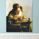 Peinture baroque classique, oeuvre d'art qui est passée dans le domaine public et qui fait des cadeaux merveilleux et d'autres produits. Un décor Vermeer classique qui montre une activité domestique quotidienne dans ses tons doux et sobres. Johannes (ou Jan, ou Johan) Vermeer était un peintre baroque hollandais connu pour sa palette distinctive de bleu et de jaune. Van Gogh a été influencé et assez intrigué par Vermeer, l'appelant un "étrange peintre" dont la palette "est constituée de bleu, de jaune de cornflower, de gris perle, de noir et blanc." L'oeuvre de Vermeer montre généralement des portraits et des scènes de la vie domestique, et il est passé de l'obscurité à devenir l'un des peintres les plus admirés de son époque. Tous nos produits sont fabriqués avec des images à grande échelle qui ont été soigneusement modifiées pour fournir la meilleure résolution, couleur et détail possible.
