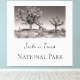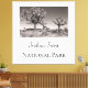 L'image montre une photo en noir et blanc d'un paysage désertique avec deux proéminents Josué. Les arbres sont grands contre un ciel bouché, leurs branches s'étendant dans des directions variées. Le premier plan est rempli de végétation désertique basse, créant un sens de profondeur et de texture.