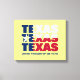 Impression de toile personnalisée de TEXAS Friendship Matters, montrant TEXAS TEXAS TEXAS TEXAS dessiné dans le drapeau du Texas, dressé contre un arrière - plan jaune pâle. En dessous, il y a du TEXTE PERSONNALISABLE qui lit WHERE AMIENDSHIP IMPORTERS, que vous pouvez personnaliser en ajoutant votre nom ou en créant votre propre texte. La devise de l'état du Texas est Amitié, et le mot espagnol 'tejas' signifie 'amis', d'où le nom du Texas est censé dériver. Cela ferait un grand cadeau à des amis texans et à toute personne qui aime l'état américain Lone Star, surtout à Noël, anniversaires, anniversaires, et pour le Mois du patrimoine du Texas. Vous aurez le choix entre une large sélection de cartes, d'invitations, d'articles de fête, de vêtements, de décors et de cadeaux sur le thème du Texas, conçus par Berean Designs. Les autres tailles sont indiquées séparément.