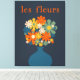 Toile Les Fleurs Retro Flowers en Vase Blue Orange