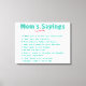 Toutes les paroles préférées de votre mère sur une belle toile enveloppée pour accrocher dans la cuisine ou le salon. Ta mère va se faire un plaisir de tous ses mamans ce Noël ou la Fête des Mères.