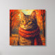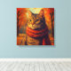 Apportez le charme de l'automne à vos murs avec les "Whiskers d'automne", un chat douillet en écharpe entouré de feuilles d'automne, décor imprimé de toile.