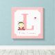 Un imprimé de toile sucrée pour décorer une chambre à coucher pour enfants ou une crèche pour bébés. Design a une petite fille mignonne dans une tenue de coccinelle avec une coccinelle qui passe. Palette de couleur rose, rouge et noir. Personnalisez avec une lettre initiale pour le nom de la fille et le nom complet. Fait un grand cadeau de baby shower!