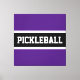 Ce design amusant présente de grandes lettres de sport à l'intérieur d'une large bande noire surlignée de rayures blanches sur un arrière - plan royal violet brillant. Les couleurs et le texte PICKLEBALL dans ce design modèle peuvent être personnalisés.