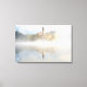 Impression paysage de toile d'un lever de soleil brumeux au lac Bled avec réflexion de l'île avec l'église dans l'eau calme du lac et avec Bled Castle dans l'arrière - plan sur une belle journée d'automne en Slovénie.