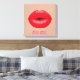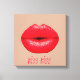 Une image pop Art de cramoisis rouge vif lèvres s'agitant pour un baiser contre un arrière - plan de couleur café. Ce design s'inspire de l'art pop, de l'art moderne, de l'art graphique, de la culture hipster et est sûr d'être une pièce de déclaration dans votre maison