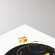 Peint de façon artistique, or, bijoux, libellule mousseuse avec ailes en figues détaillées sur fleur sauvage dorée, contre cercle texturé noir. La libellule dorée.
