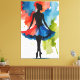 Una pieza única que combina la delicadeza del ballet con la fuerza expresiva del arte abstracto en acuarela. Los colores vibrantes (azul, rojo y verde) sobre la silueta en negro crean un contraste elegante y sofisticado, ideal para dar vida a cualquier espacio.