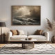 Seascape with powerful waves and sunbeams breaking through dramatic clouds. Sepia tones create a melancholic and inspiring atmosphere. Perfect for decoration, posters and wall art. A work that conveys strength, hope and the untamed beauty of nature in its wildest form.