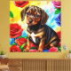 Le carlin solitaire dachshund mêle l'art d'impression de chiots avec des roses colorés. Fleurs multicolores. Ça aurait l'air super dans la chambre d'un enfant. Décor maison.
