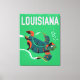 affiche de voyage louisiana vintage. Un art de voyage louisiana USA avec une mignonne tortue marine de style vintage.