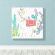A soft, watercolor with a llama standing among cacti Artist : Mary Urban