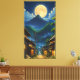 La lune brille au-dessus d'une petite ville de Java, en Indonésie, avec une grande montagne en arrière - plan.