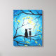 Deux chats assis sur une branche regardant la pleine lune avec un ciel bleu rempli d'étoiles. Les branches des arbres qui les entourent de petites fleurs jaunes. chat tuxedo noir et chat tacheté blanc et gris bicolore. Peinture acrylique Whimsical originale de Donna Leger. Tous droits réservés. ©dessins ironiques