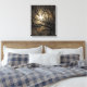 Cette impression de toile enveloppée présente un ciel nocturne mystique. L'air est imprégné de brume. La pleine lune qui brille à travers les arbres illumine les nuages brumeux dans les tons or, jaune orange, blanc et marron et forme un motif abstrait intéressant.
