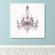Élégant lustre rose en damas sur toile, art mural.