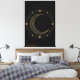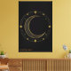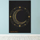 Transformez vos murs en une galerie de merveilles célestes. Cette impression sur toile haut de gamme présente un majestueux croissant de lune doré et des étoiles complexes sur un fond noir profond et sophistiqué. L'esthétique bohème minimaliste associée à des tons métalliques luxueux crée un point focal qui irradie calme et élégance.