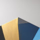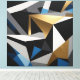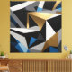Transform your space with this impressive 3D geometric art. Faceted triangles in metallic gold, deep blue, black, and white create a modern prismatic structure. Ideal for corporate decor and sophisticated interiors. Bold design that brings depth and timeless elegance to your environment.